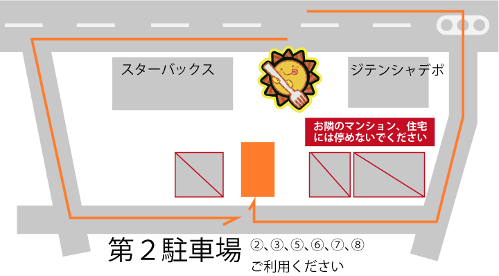 〈駐車場〉店舗前3台、第2駐車場6台